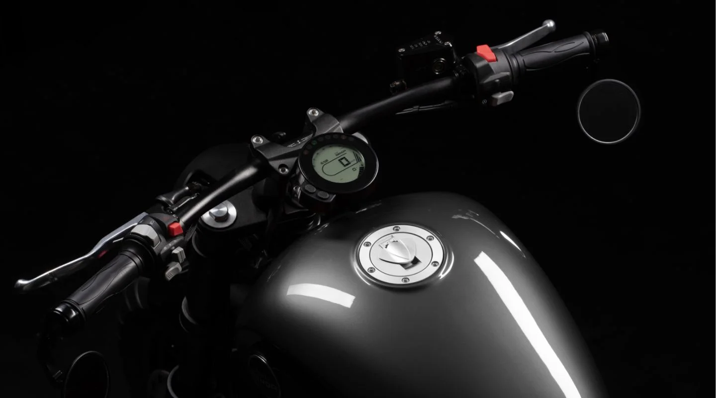 La moto está llena de detalles custom. Un claro ejemplo es el tren trasero con doble amortiguador lateral y un guardabarros que recubre la rueda, encabezado por la luz trasera con forma ovalada.